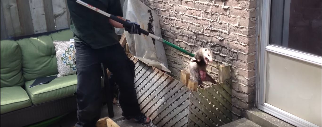 up against that wall. That will scare the possum and it will begin to run out of the walls. Once it does,