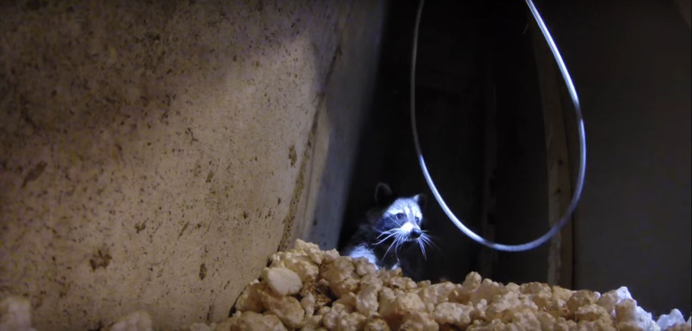 how a female Naples raccoon provides a survival guide to their young by making them get used to life in the wild.